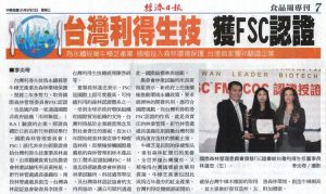台灣利得生技 獲FSC認證-經濟日報105年6月22日報導