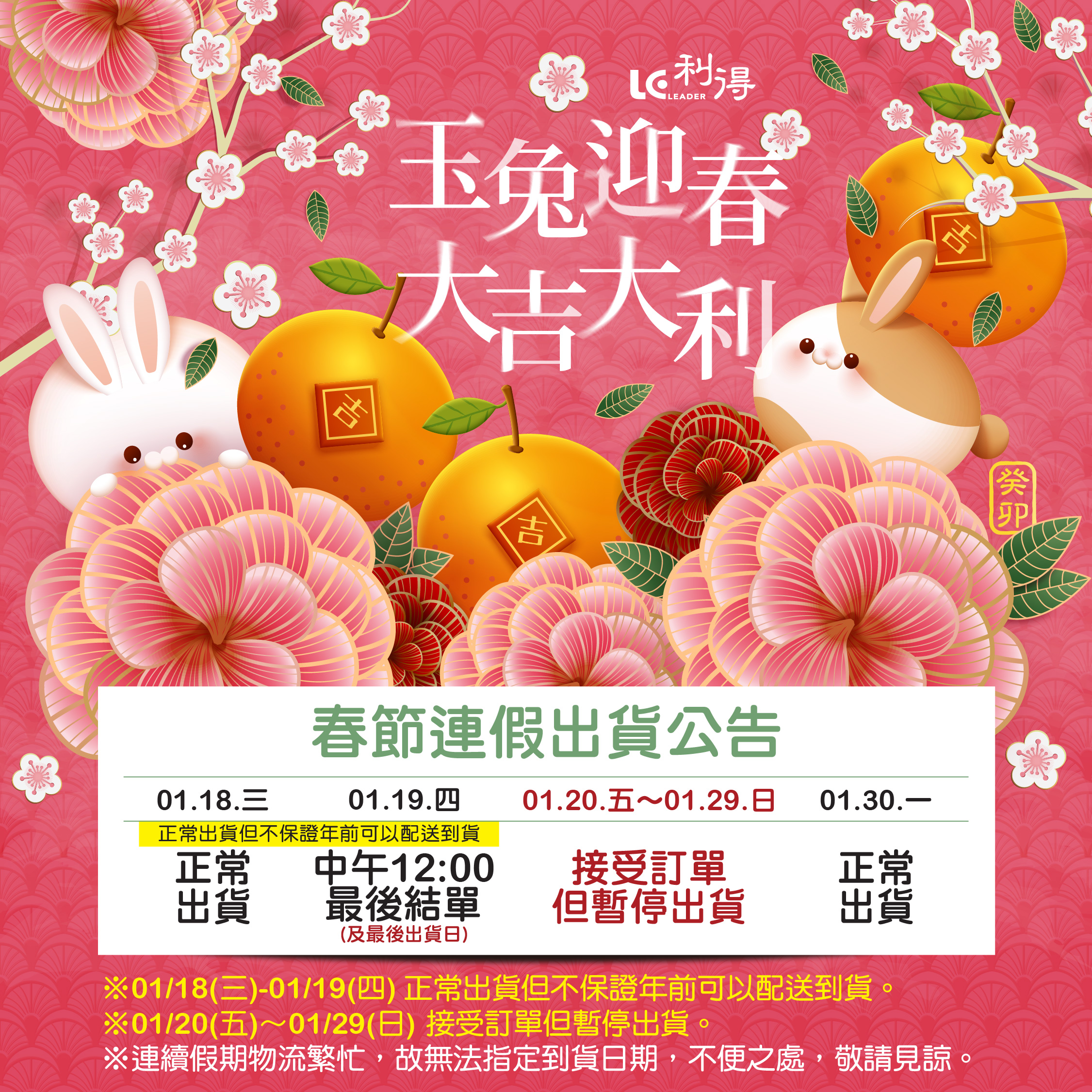 Home » 最新消息 » 【公告】2023 春節連假期間暫停出貨與客服