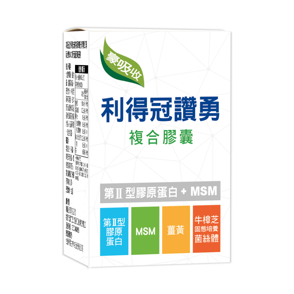 • 主要成分:專利第II型膠原蛋白、MSM、牛樟芝固態培養菌絲體